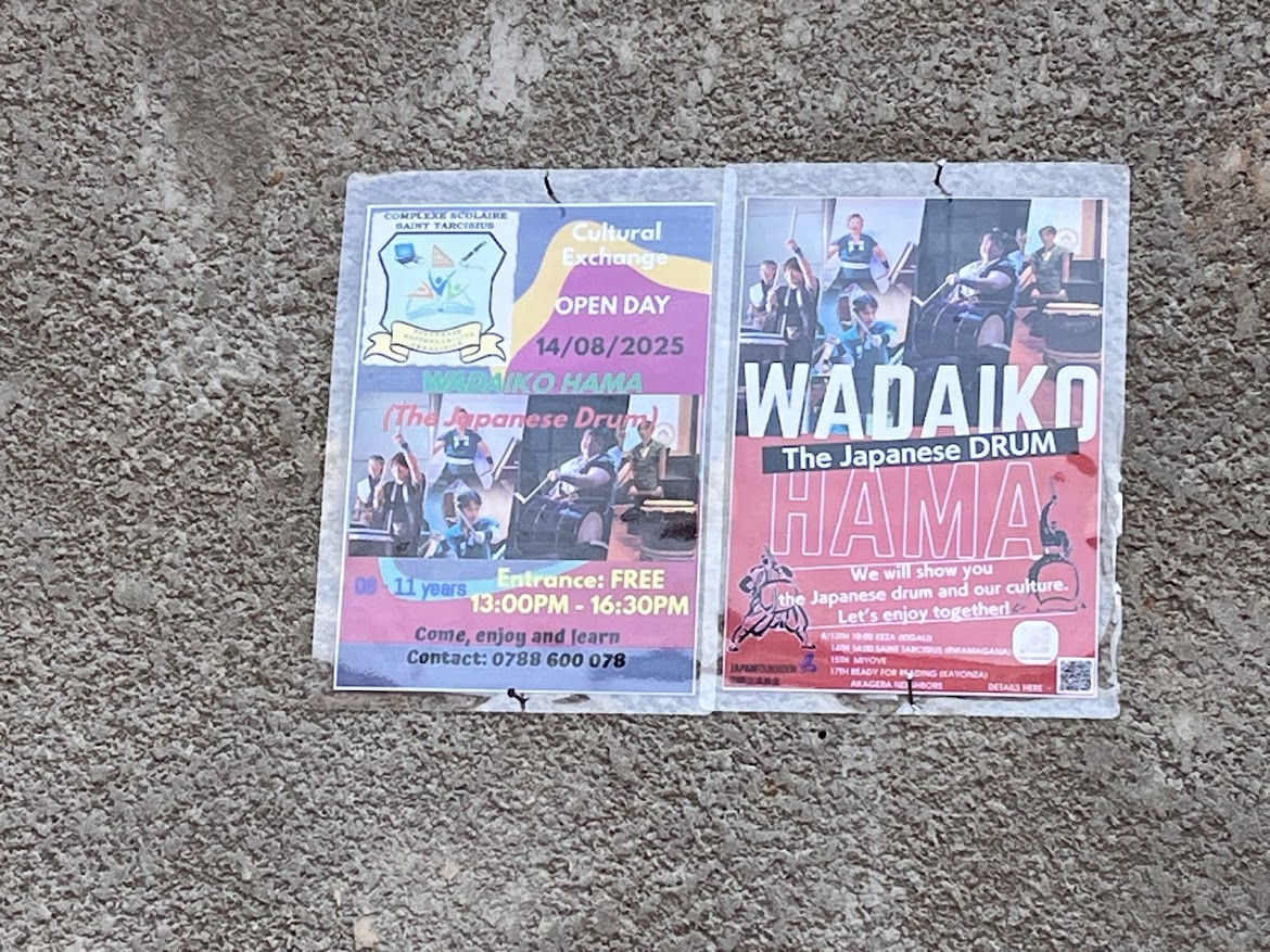 ルワンダ東部ルワマガナのSt Tarcisius小学校で開催された「Japan Day」。キガリから車で約2時間、日本留学経験者が設立したこの小学校で、和太鼓を中心に日本文化を伝える一大イベントです。