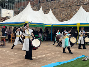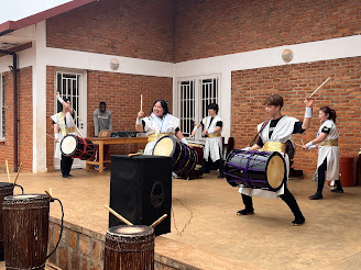 NPO法人LeaDの副理事長Nさんのリーダーシップのもと、ルワンダ在住の日本人(多くは協力隊員)の協力で実現。広い校庭には地元の子どもたちが大勢集まり、目をキラキラさせて開幕を待っています。広い校庭では、和太鼓とルワンダの力強い太鼓の競演が青空に響き合い、集まった子どもたちは目を輝かせてくぎ付け!