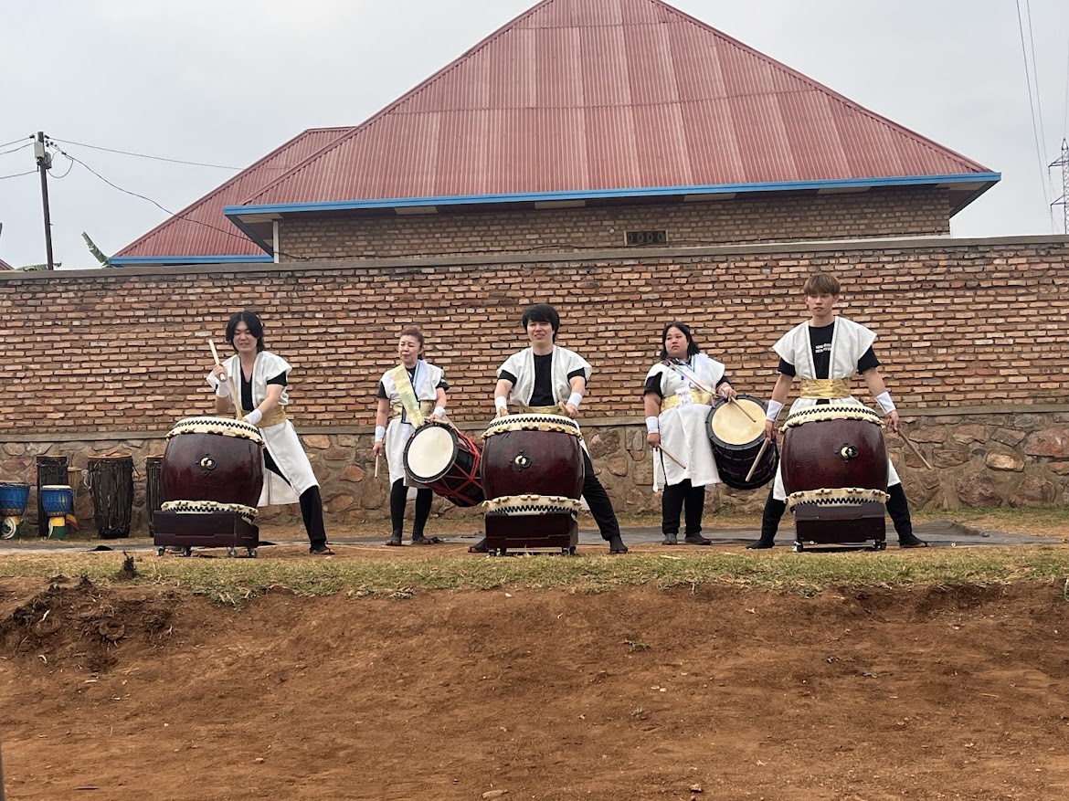 会場はキガリから北へ2時間弱、ギチュンビ郡のミヨベ。狩猟採集民族のトワ族が政府の方針で定住したこの地で、TERは住民の自立を支援しています。娯楽の少ないミヨベの人々にとって、和太鼓破魔のプロの演奏は衝撃そのもの。拍手は鳴りやまず、「WADAIKO HAMA」の響きは老若男女の心に刻まれました。その拍手に包まれて、音楽が国境も歴史も越えて平和を願う心を結ぶのだと、改めて実感しました。 公演の様子はYouTubeでチェック!(https://www.youtube.com/watch?v=hJZo6pzmjUg)